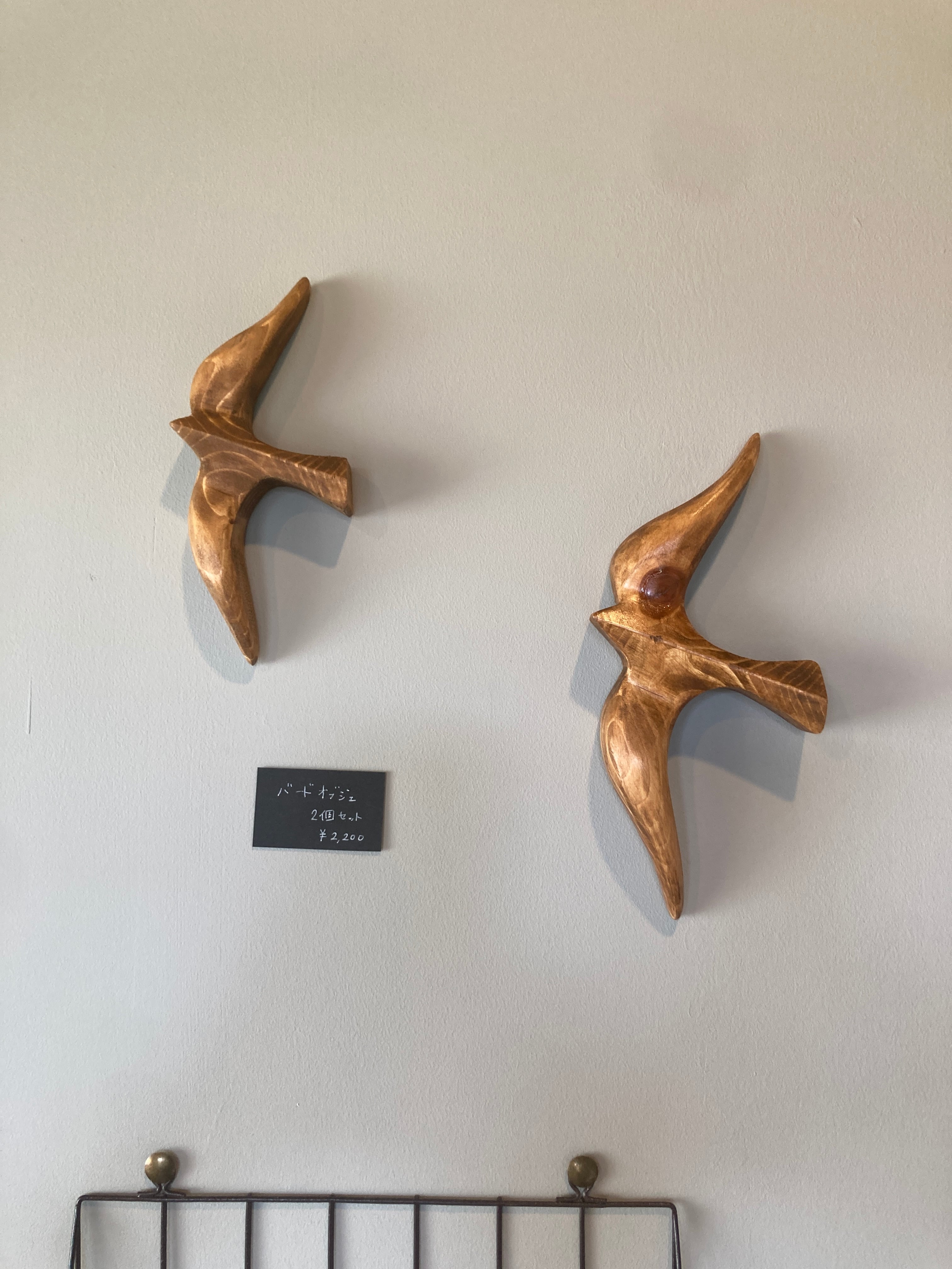 羽を大きく広げて羽ばたく鳥の姿を、木材ならではの柔らかな曲線で表現したウォールオブジェです。