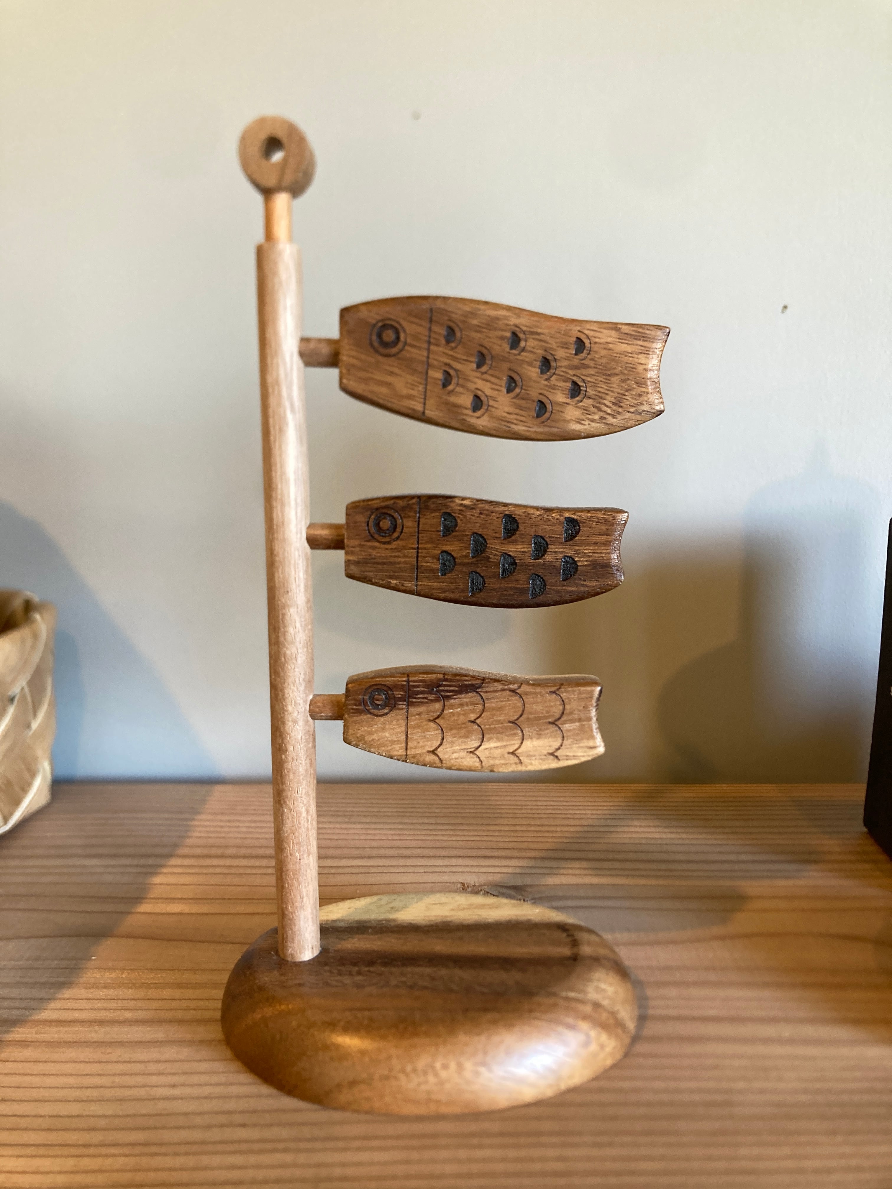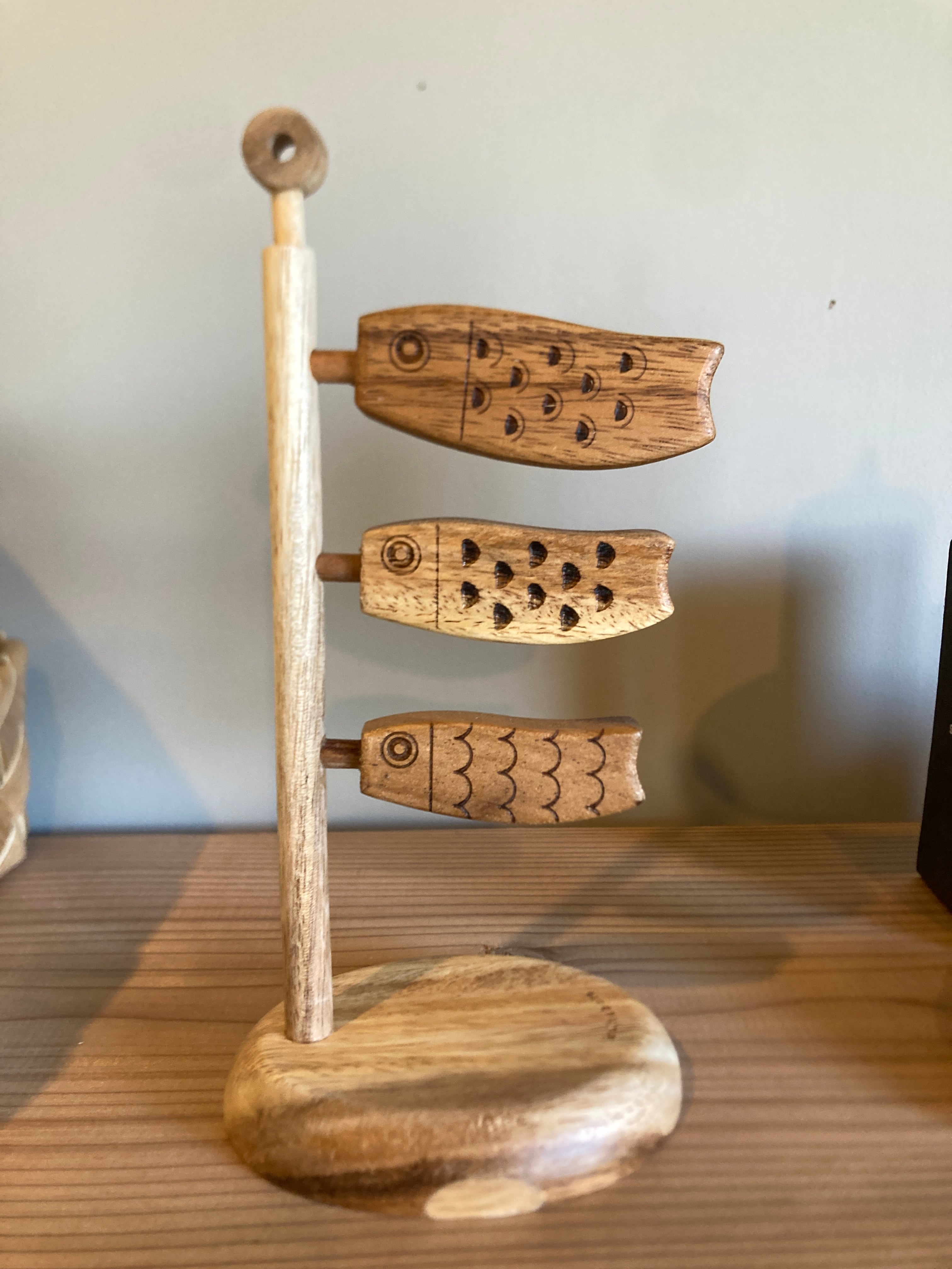 インドネシア原産のコントラストが美しいスワーウッドを使用した 木製のこいのぼりです。